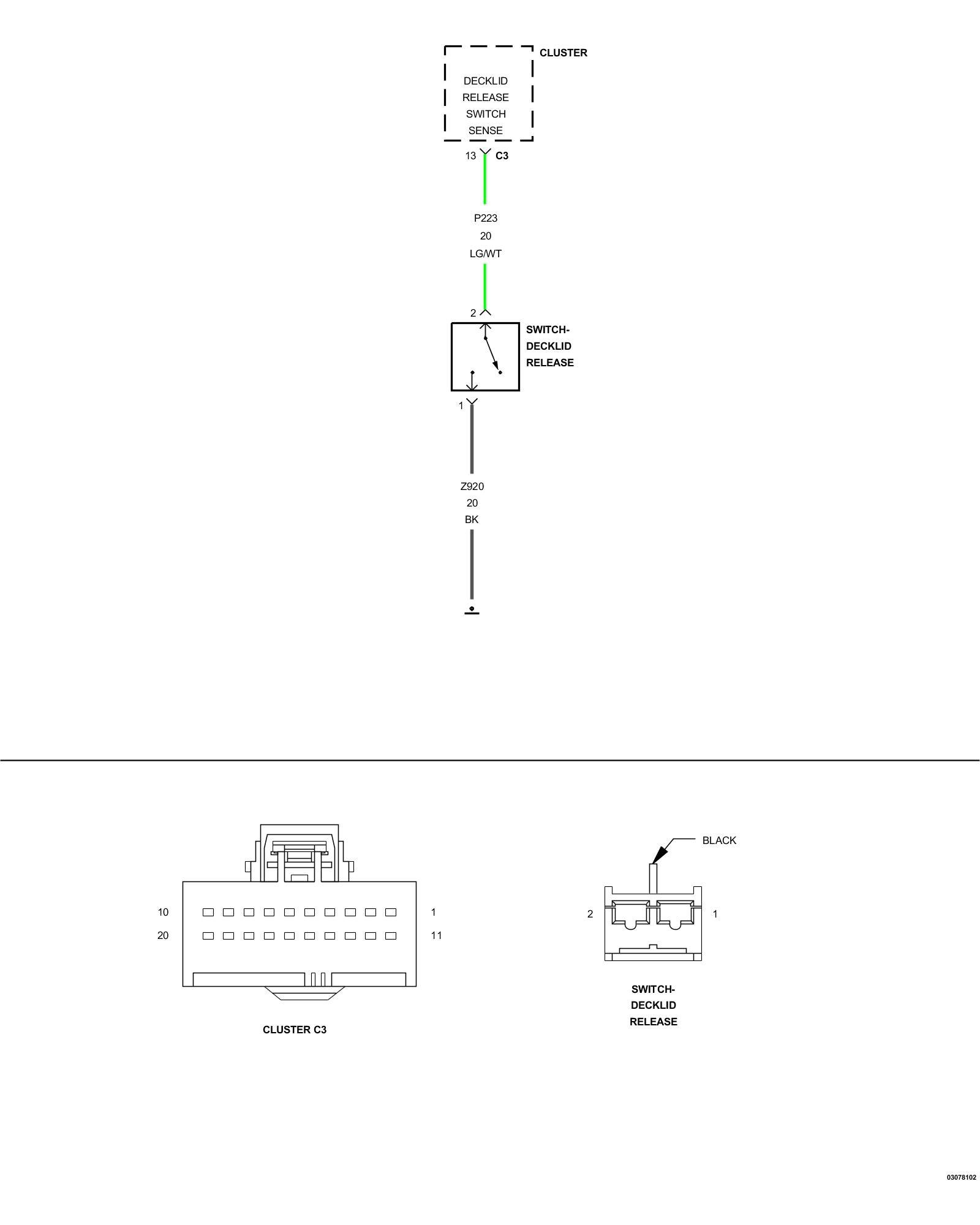 - Repair the (P223) Decklid Release Switch Sense circuit for a short to voltage.