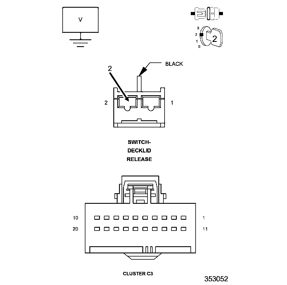 4. Measure the voltage between Ground and the (P223) Decklid Release Switch sense circuit.