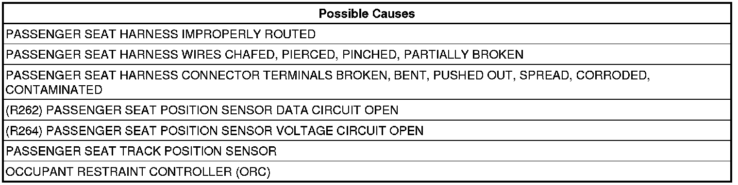 B1B95-PASSENGER SEAT TRACK POSITION SENSOR CIRCUIT OPEN