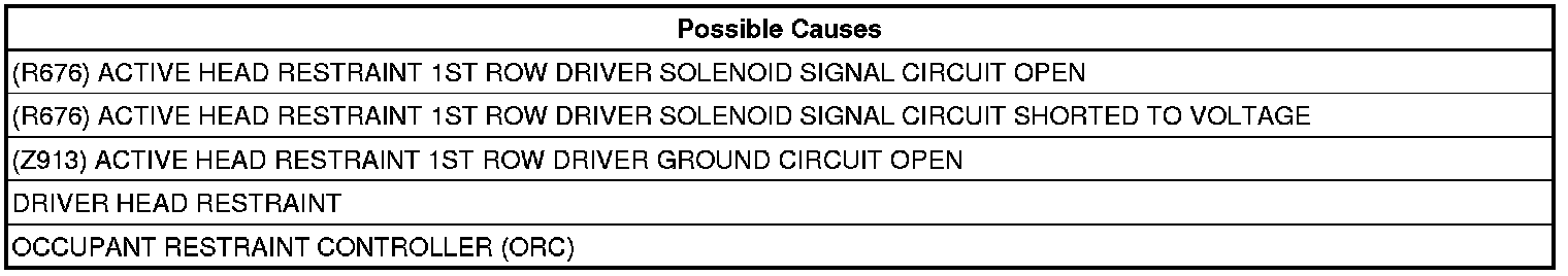 This code will set, if the ORC detects an Open circuit on the (R676) Driver Head Restraint Solenoid Signal circuit.