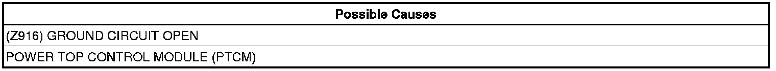 This code will set if the Power Top Control Module (PTCM) senses a loss of ground that supplies ground for the Left Rear Window Motor and the Roof Header Motor.
