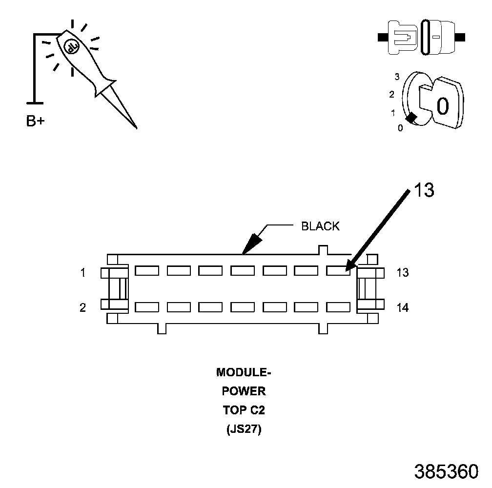 Always perform the Power Top System Pre-Diagnostic procedure before proceeding. Power Top System Pre-Diagnostic Procedure.
