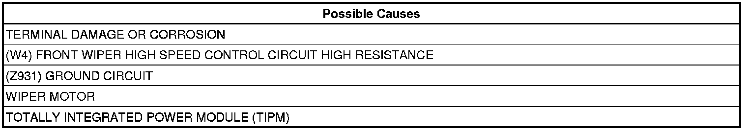 - Repair the excessive resistance in the (W4) Front Wiper High Speed Control Output circuit.