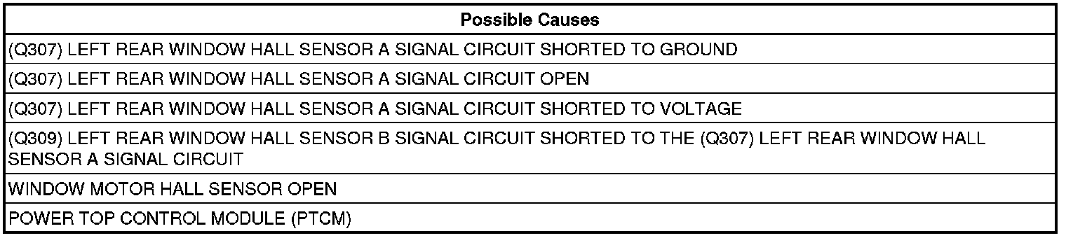 - Repair the (Q307) Left Rear Window Hall Sensor A Signal circuit for a short to voltage.