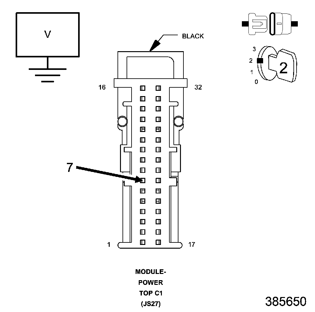 1. Measure the resistance of the (Q307) Left Rear Window Hall Sensor A Signal circuit between the PTCM C1 connector (cavity 7) and the Motor connector (cavity 5).