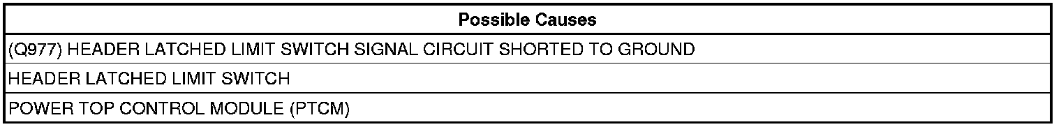 - Repair the (Q977) Header Latched Limit Switch Signal circuit for a short to ground.