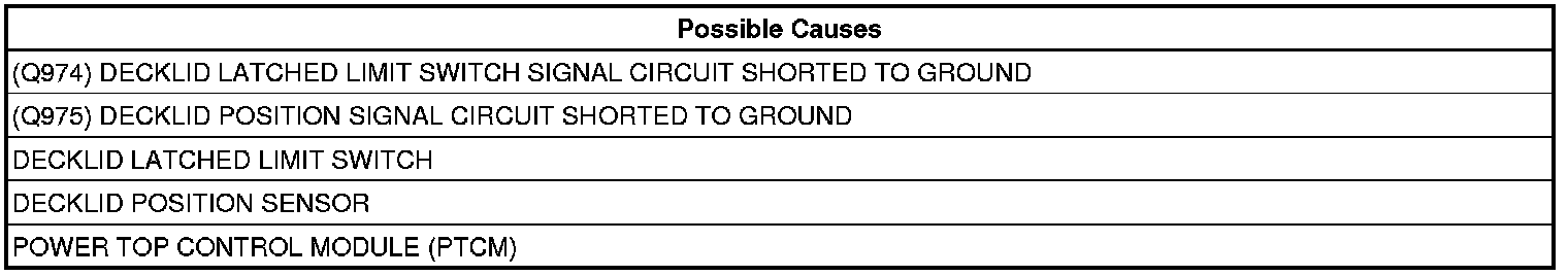- Repair the (Q974) Decklid Latched Limit Switch Signal circuit for a short to ground.