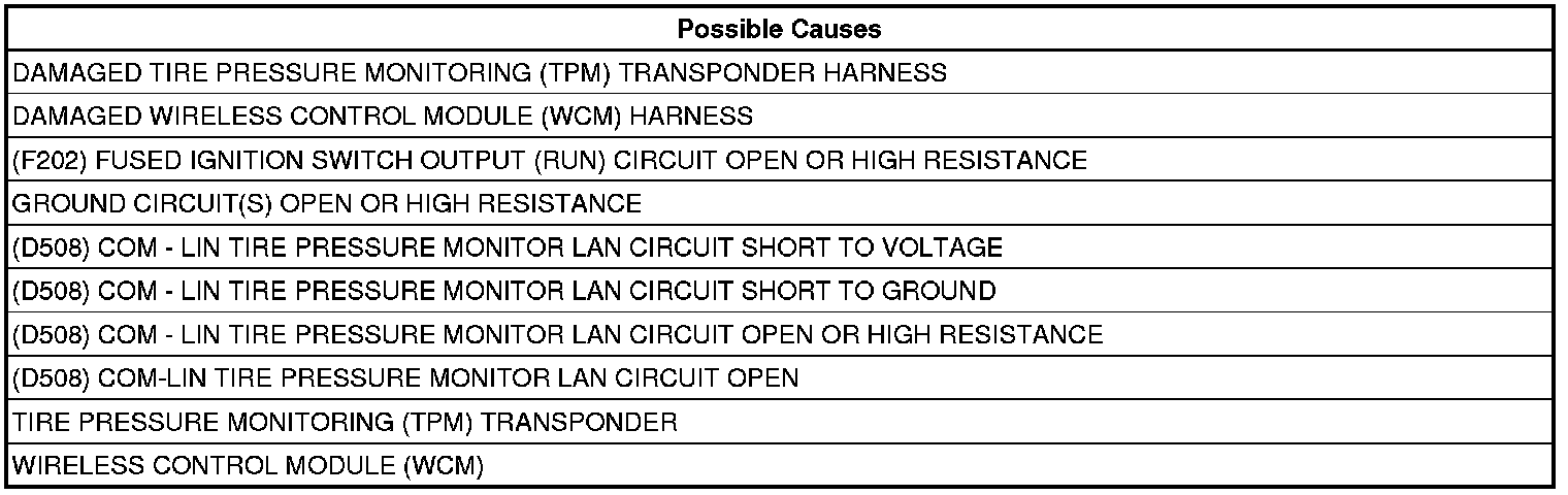 - Repair the (D508) COM - LIN Tire Pressure Monitor LAN circuit for a short to voltage.
