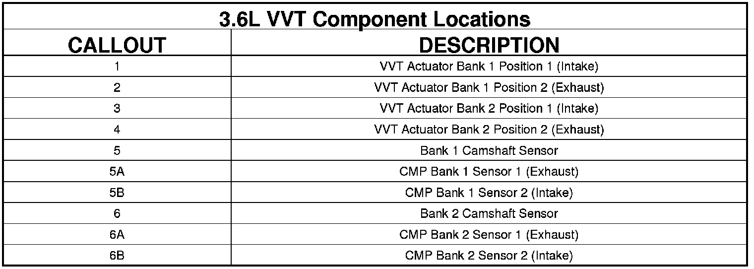 Variable Valve Timing (VVT) allows the Powertrain Control Module (PCM) to monitor and adjust the position of each Camshaft, based on desired torque levels and engine operating conditions. The PCM controls solenoid operated control valves located on the front of the engine. There is one solenoid for each Camshaft, used to direct oil pressure to hydraulic actuators mounted between each Camshaft and its driving sprocket. The oil pressure alters the angular position or phasing of each Camshaft relative to Crankshaft rotation. A sensor is used to monitor the position of each Camshaft.