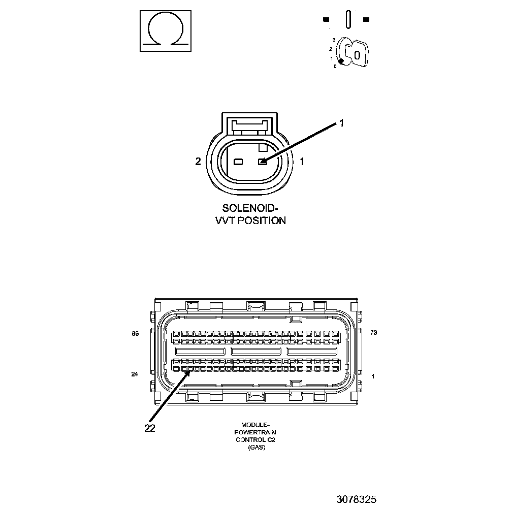 2. Inspect the wiring and connectors between the Camshaft 1/2 Position Solenoid/Oil Control Valve and the Powertrain Control Module (PCM).