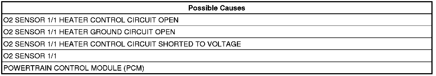 - Repair the O2 Sensor 1/1 Heater Ground circuit for an open or high resistance.
