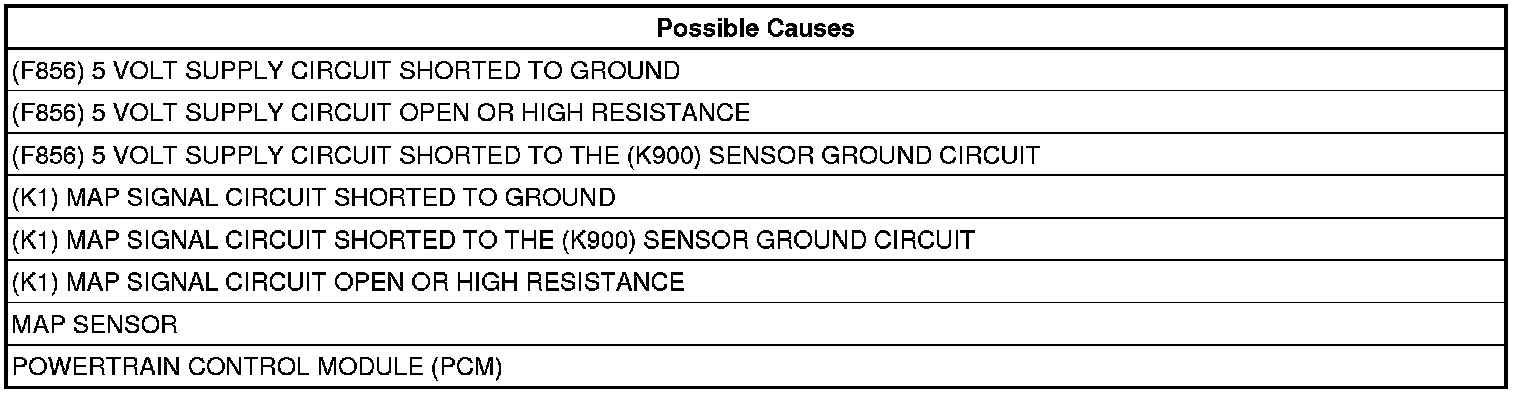 - Repair the (K1) MAP Signal circuit for a short to the (K900) Sensor Ground circuit.