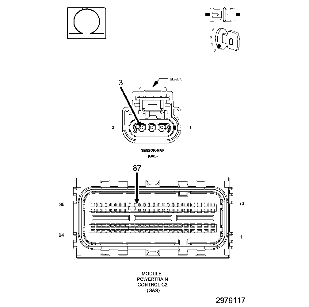 1. Using the wiring diagram/schematic as a guide, inspect the wiring and connectors between the MAP Sensor and the Powertrain Control Module (PCM).