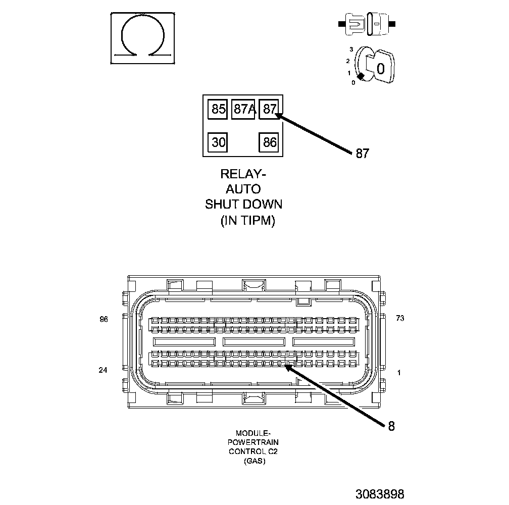 With battery voltage greater than 10.0 Volts. Auto Shutdown Relay energized. Engine speed less than 3000 RPM.