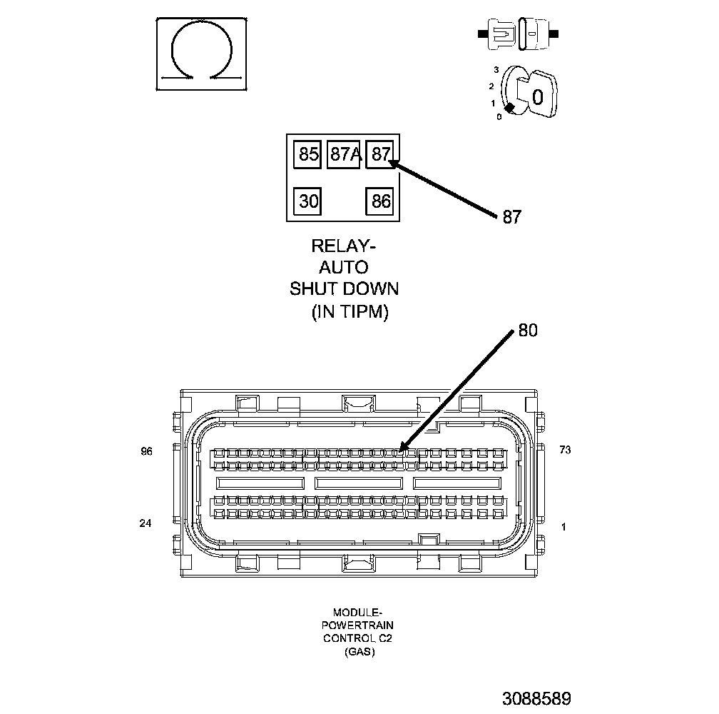 With battery voltage greater than 10.0 Volts. Auto Shutdown Relay energized. Engine speed less than 3000 RPM.
