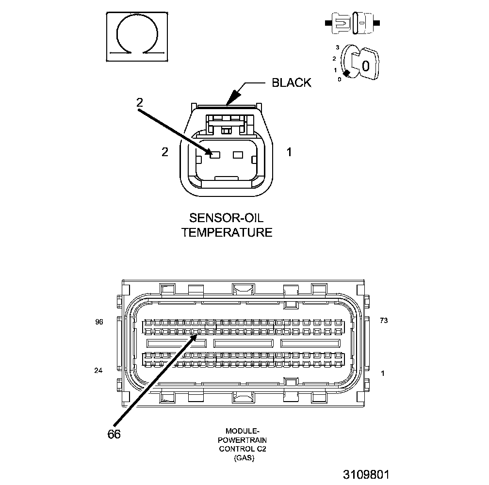 1. Using the wiring diagram/schematic as a guide, inspect the wiring and connectors between the Engine Oil Temperature Sensor and the Powertrain Control Module (PCM).