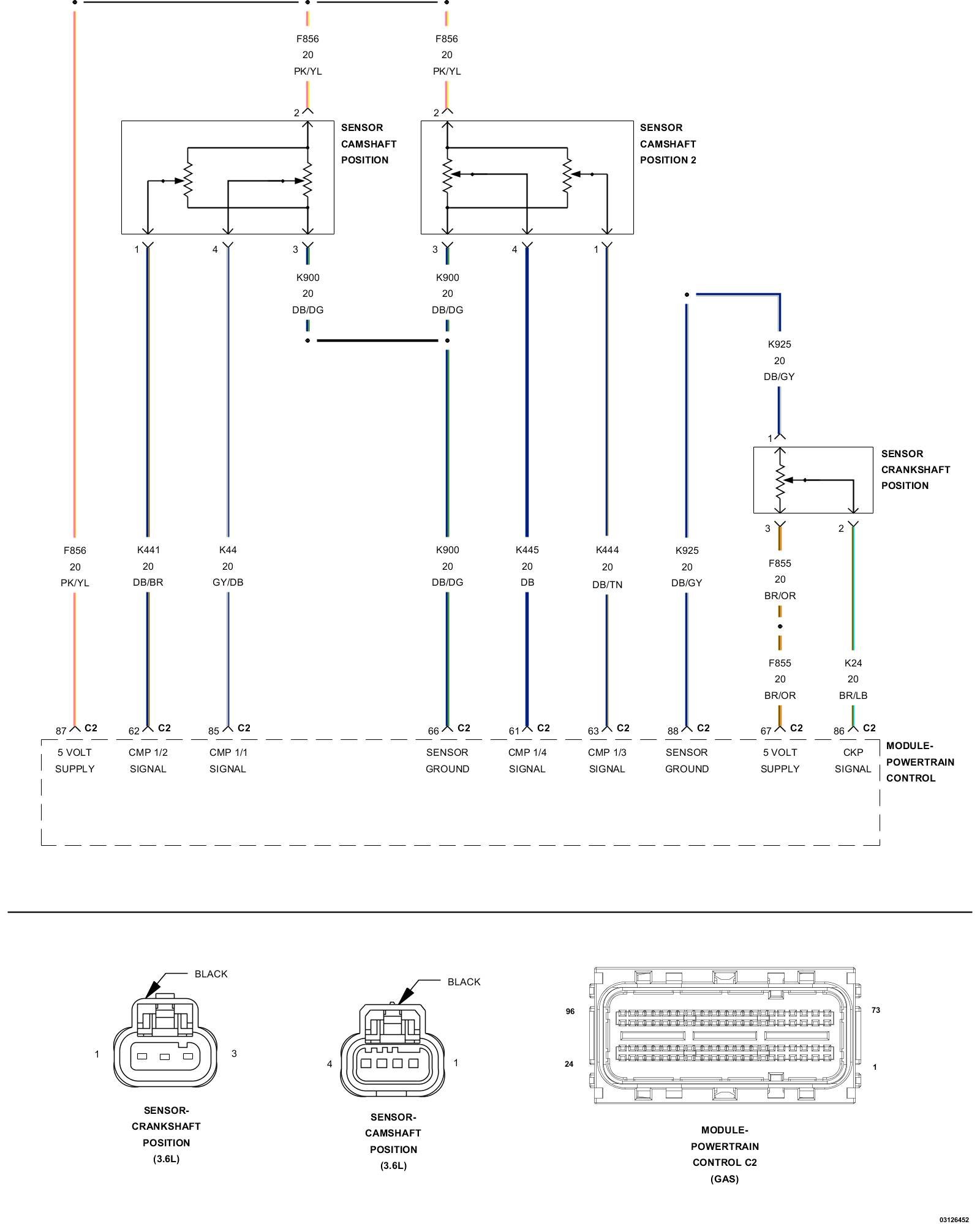 4. Verify that there is good pin to terminal contact in the Crank Position Sensor and Powertrain Control Module connectors.