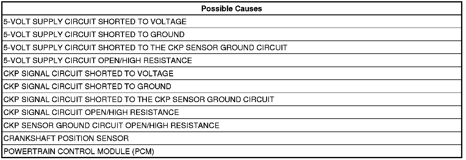 - Repair the CKP Sensor Signal circuit for a short to voltage.