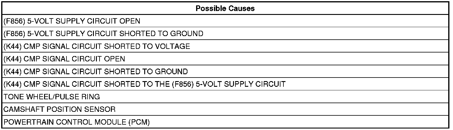 11. (K44) CMP SIGNAL CIRCUIT SHORTED TO THE (F856) 5-VOLT SUPPLY CIRCUIT