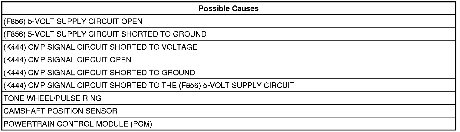 - Repair the short between the (F856) 5-Volt Supply circuit and the (K444) CMP Signal circuit.