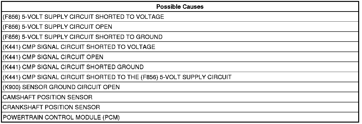 5. (K441) CMP SIGNAL CIRCUIT SHORTED TO THE (F856) 5-VOLT SUPPLY CIRCUIT