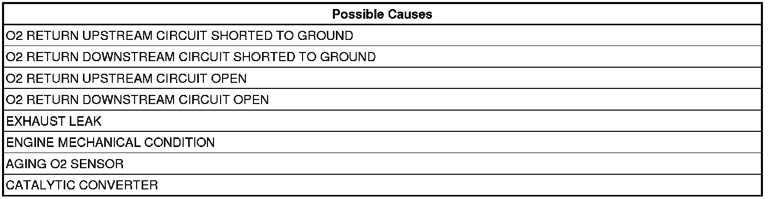 NOTE: If an O2 Sensor DTC set along with the Catalytic Converter Efficiency DTC diagnose the O2 Sensor DTCs before continuing.