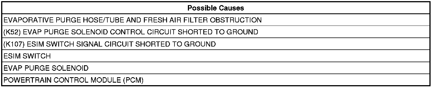 - Repair the short to ground in the (K52) Evap Purge Control circuit.
