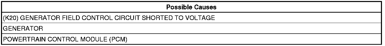 - Repair the short to voltage in the (K20) Generator Field Control circuit.