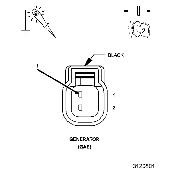 3. Using a 12-Volt test light connected to ground, probe the (K20) Generator Field Control circuit in the Generator Field harness connector.