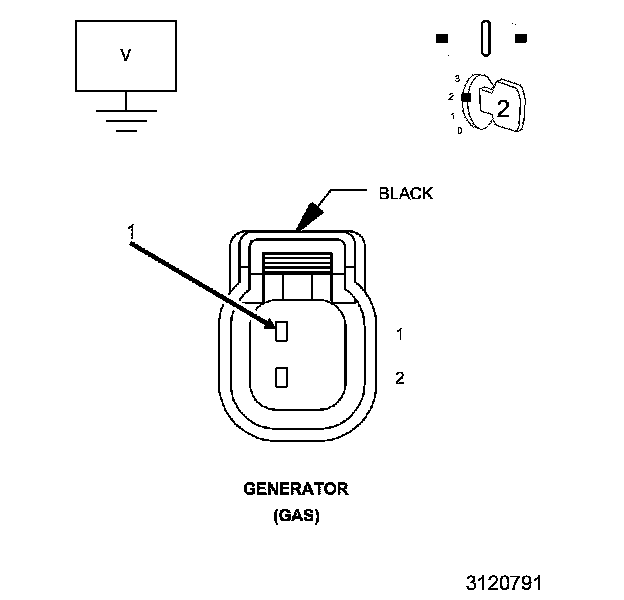 4. Measure the voltage on the (K20) Generator Field Control circuit at the Generator Field harness connector.