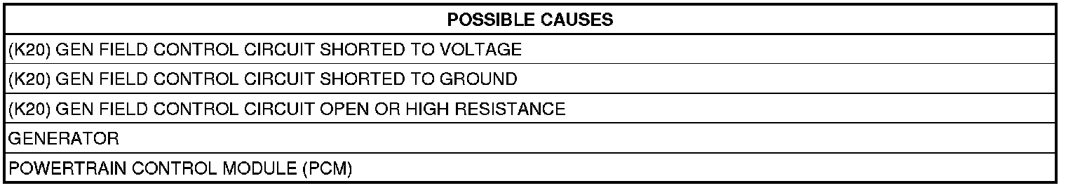- Repair the (K20) Generator Field Control circuit for a short to voltage.