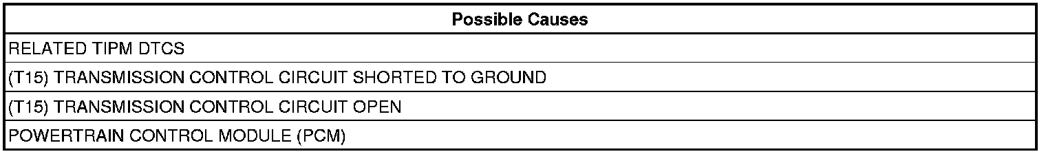 - Repair the (T15) Transmission Control circuit for a short to ground.