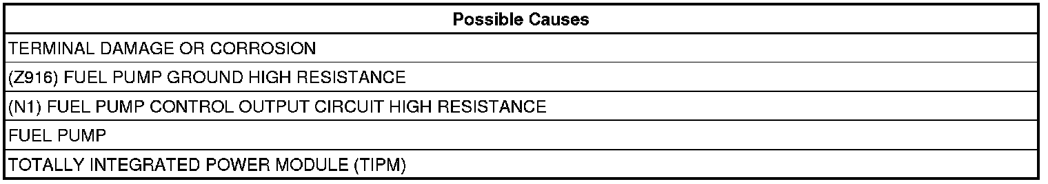 - Repair the excessive resistance in the (Z916) Fuel Pump Ground circuit.