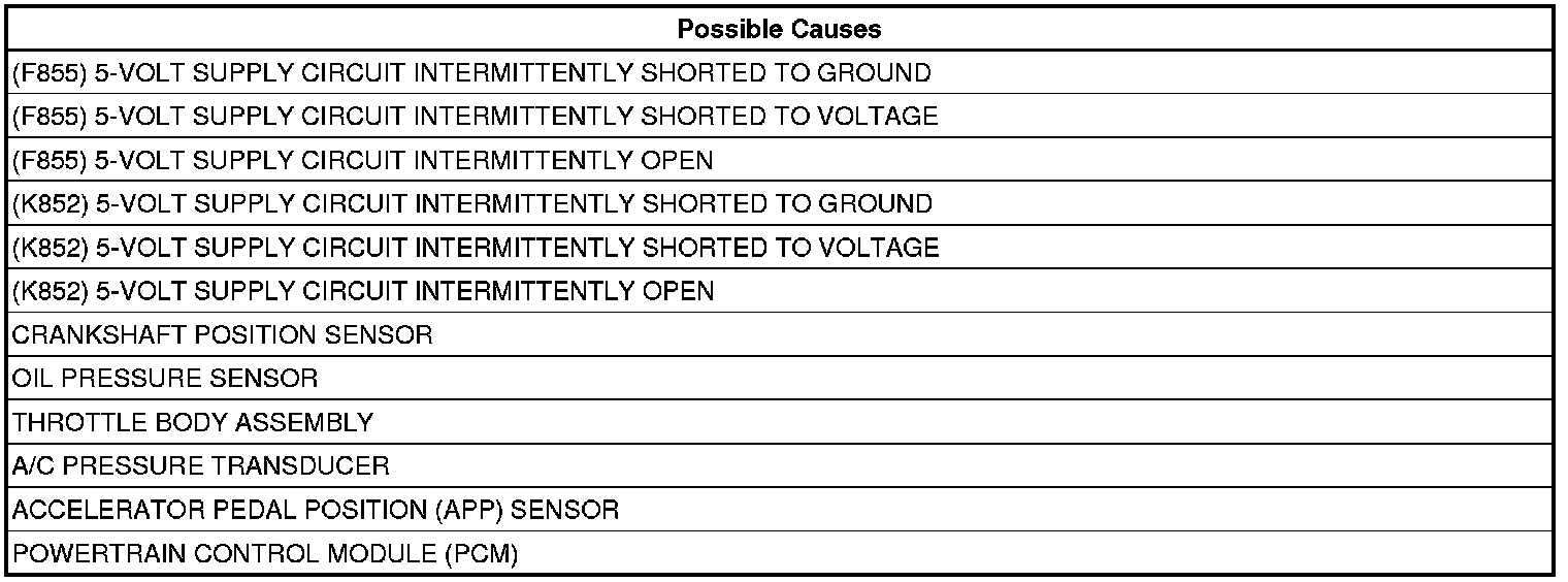 - Repair the (F855) 5-Volt Supply circuit for an intermittent open or short circuit in the wiring harness. Make sure to check all of the in-line connectors for poor connections or spread terminals.