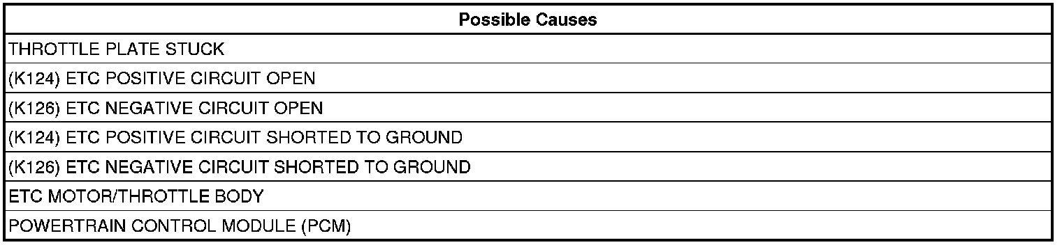 1. Measure the resistance of the ETC Motor between the (K124) ETC Positive circuit and the (K126) ETC Negative circuit at the Throttle Body harness connector.