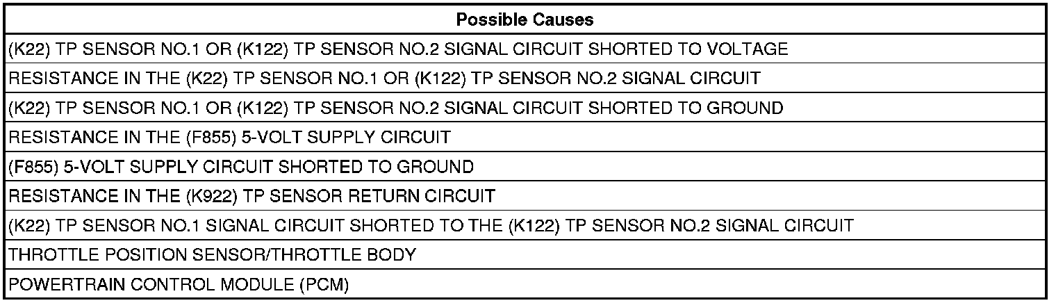 - Repair the excessive resistance in the (K22) TP Sensor No.1 Signal circuit.