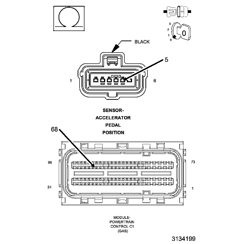 3. Look for broken, bent, pushed out or corroded terminals. Verify that there is good pin to terminal contact in the APP Sensor and Powertrain Control Module connectors.