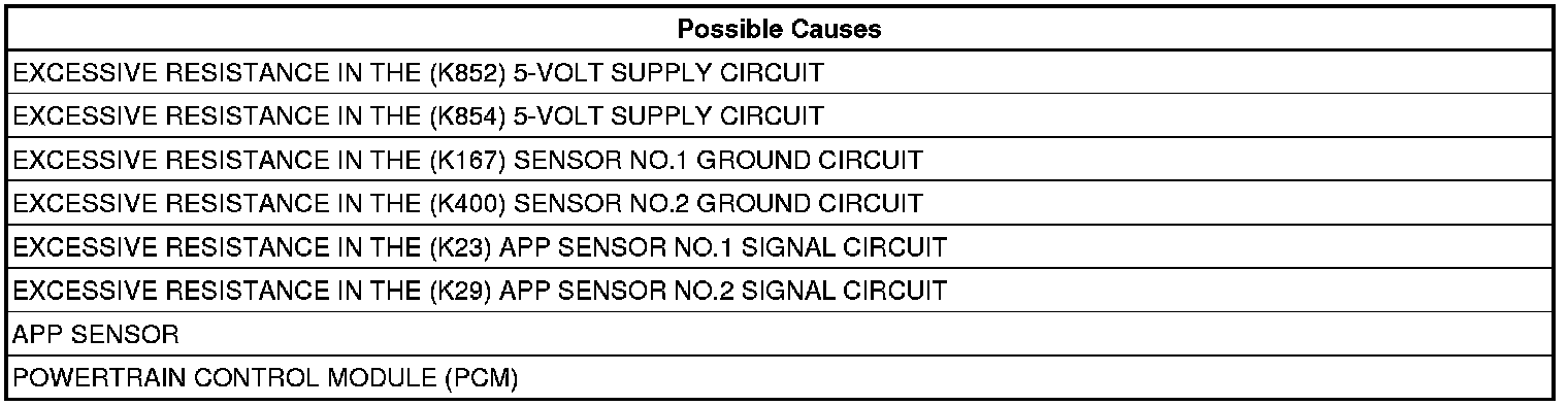 - Repair the excessive resistance in the (K23) APP Sensor No.1 Signal circuit.