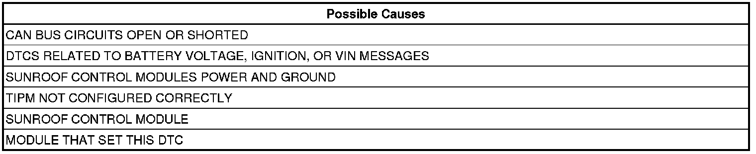 Bus messages not received from the Sunroof Control Module for approximately two to five seconds.