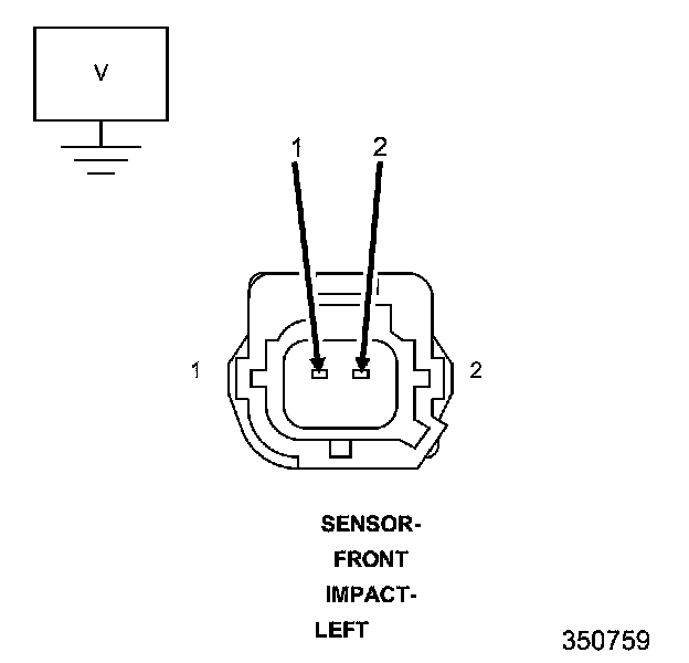 1. Measure the resistance between the (R79) Front Left Impact Sensor Signal circuit and the (R81) Front Left Impact Sensor Ground circuit at the Front Left Impact Sensor harness connector.