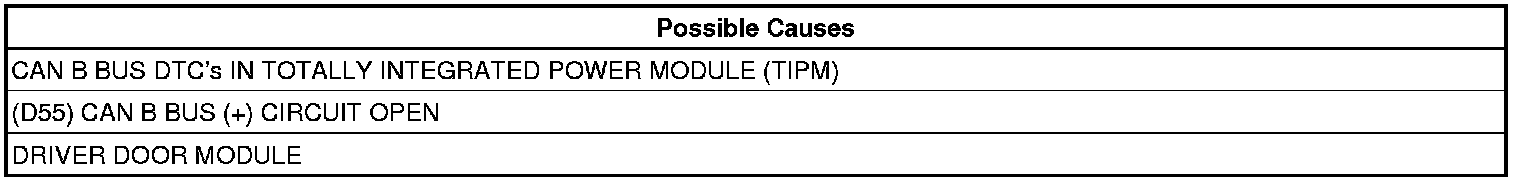 - Repair the (D55) CAN B Bus (+) circuit for an open.
