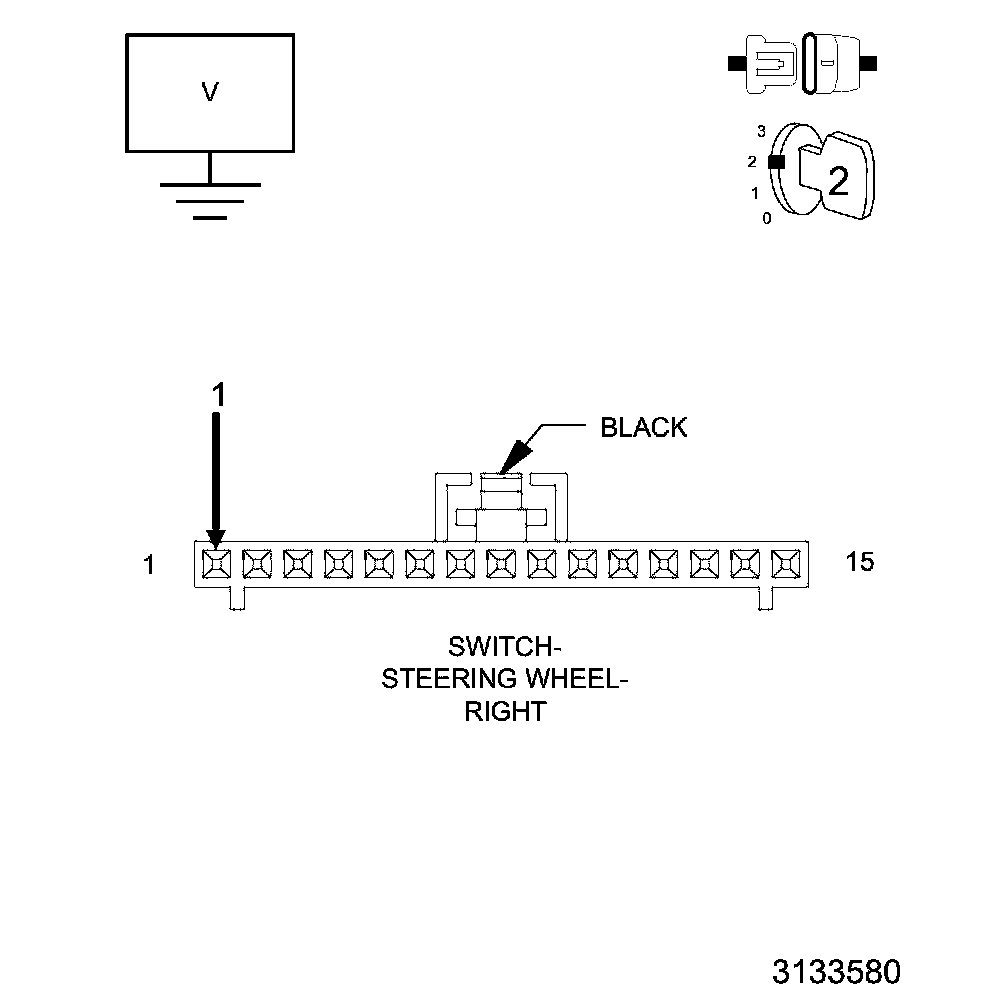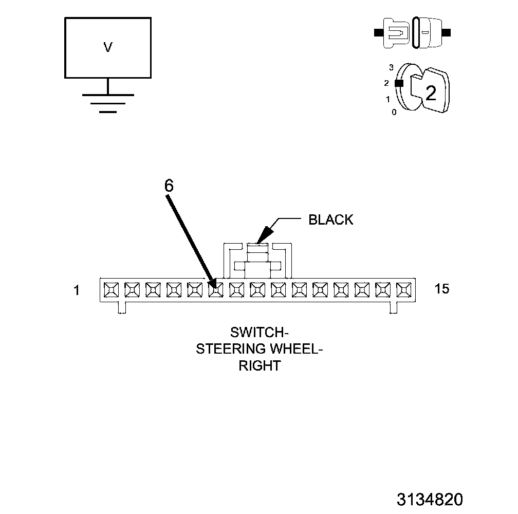 1. Measure the voltage of the (A952) Fused B (+) circuit at the Right Steering Wheel Switch (Speed Control Switch) harness connector.