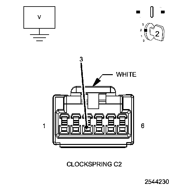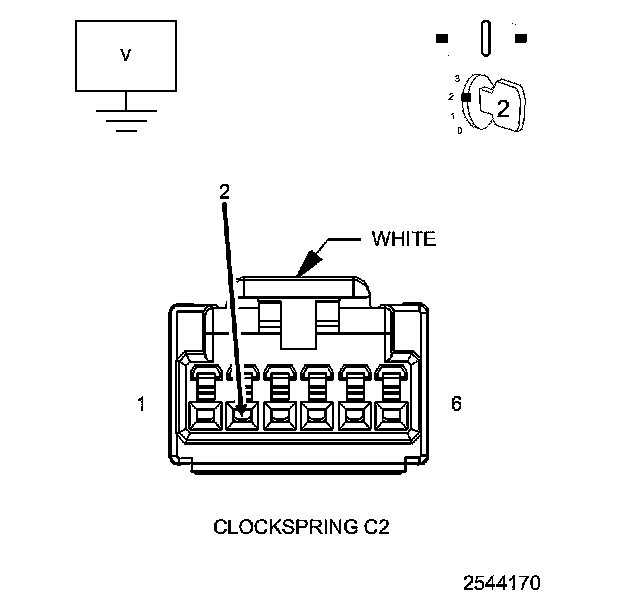 3. Measure the voltage of the (D506) LIN Bus circuit at the Clockspring C2 harness connector.
