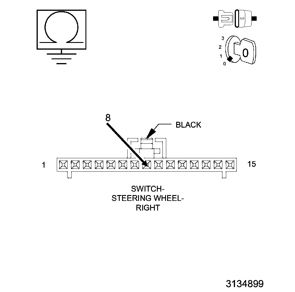 2. Measure the resistance between ground and the (Z910) Ground circuit at the Right Steering Wheel Switch (Speed Control Switch) harness connector.