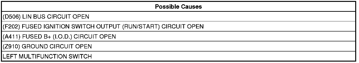 The Cluster does not receive any LIN Bus messages from the Left Multifunction Switch.