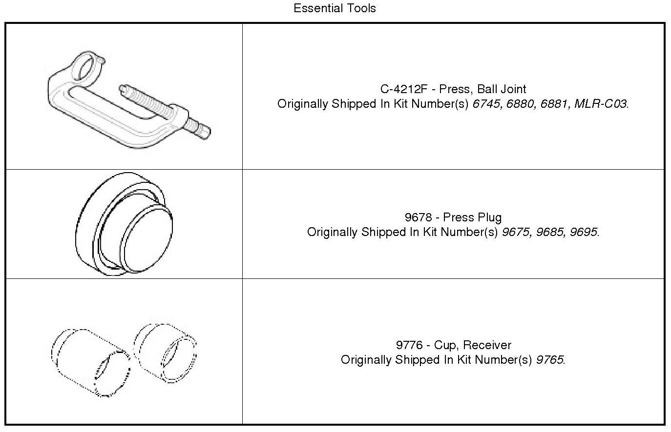 Prior to using special tools, lubricate Press, Ball Joint (C-4212F) (1) threads to provide ease of use and promote tool longevity.