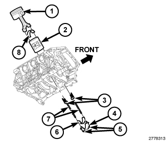 8. Remove the plastic guide plates (3) from the Guide Pins (8189) (7) and install the Guide Pins to the connecting rod being installed.