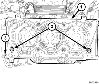 The installation of the cylinder head gaskets are not interchangeable between the left and right cylinder heads. They are clearly marked (3) with "R" for right and "L" for left. They must be applied on a dry surface, without the use of any adhesives.