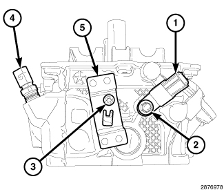 3. If removed, install the engine wire harness retainer bracket (5) with a T30 bolt (3) tightened to 12 Nm (106 in. lbs.).