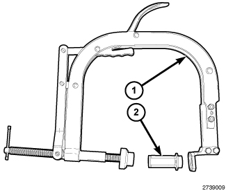 2. Position the Valve Spring Compressor Adapter (10224) (2) in the Valve Spring Compressor (C-3422-D) (1).